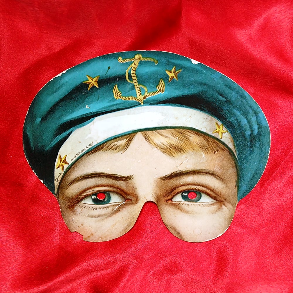 At the turn of the century, soda fountains weren’t just places to grab a drink — they were social centers and competitive businesses that needed to stand out. Masks like this were handed out to patrons (often children or families) as both entertainment and advertising. The bold sailor design with its anchor-emblazoned cap and piercing lithographed eyes helped link the brand with “modern sanitary practices,” a major marketing push in the early 1900s when cleanliness and health were buzzwords.